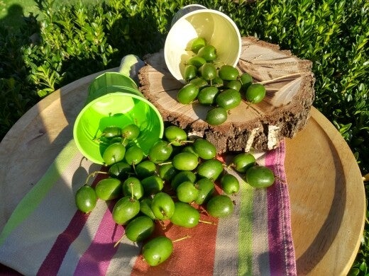 De kiwibes is een kleine kiwivrucht die volledig, dus met schil, kan gegeten worden. Het zoete vruchtvlees bevat een hoog gehalte aan vitamine C. De langwerpige of ronde, onbehaarde vruchten hebben ongeveer de grootte van kruisbessen.